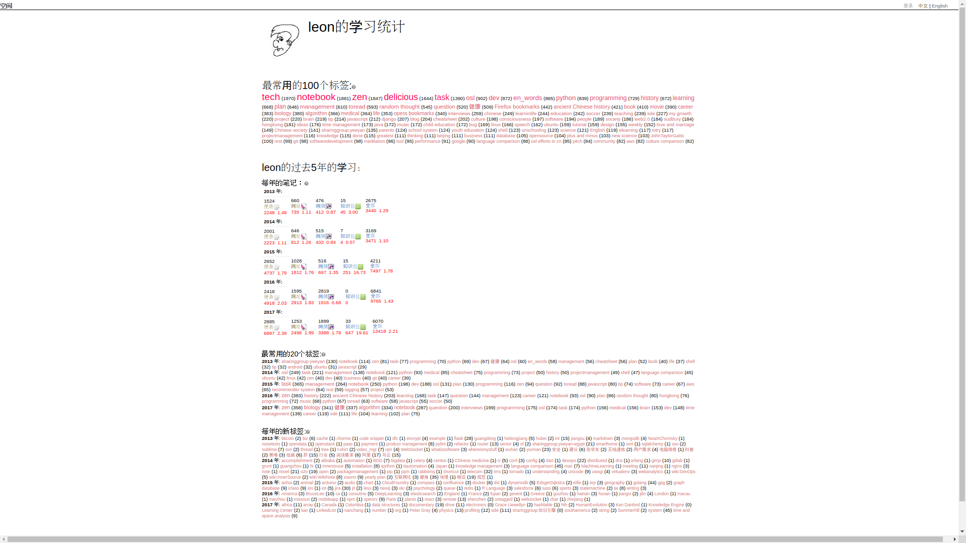 每年最常用的20个标签和每年的新标签让你从标签的角度对每年的学习进展有一个了解。
